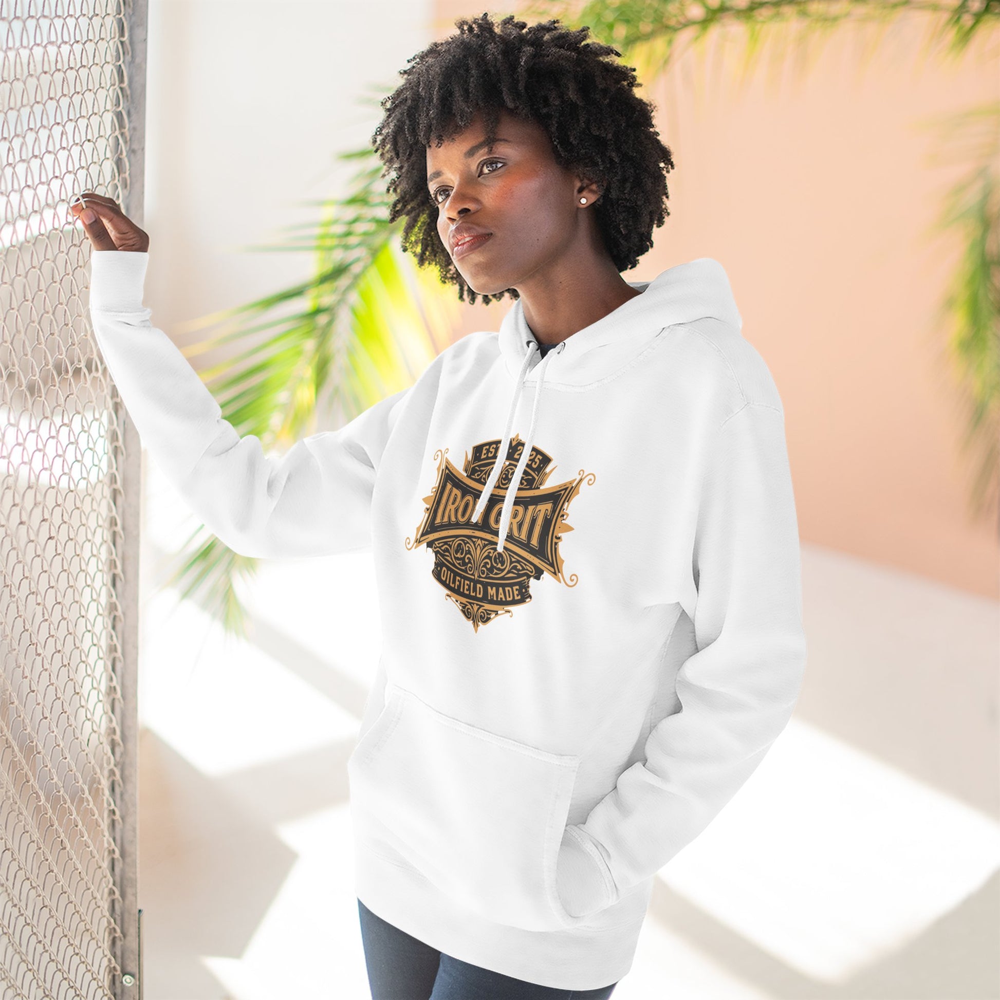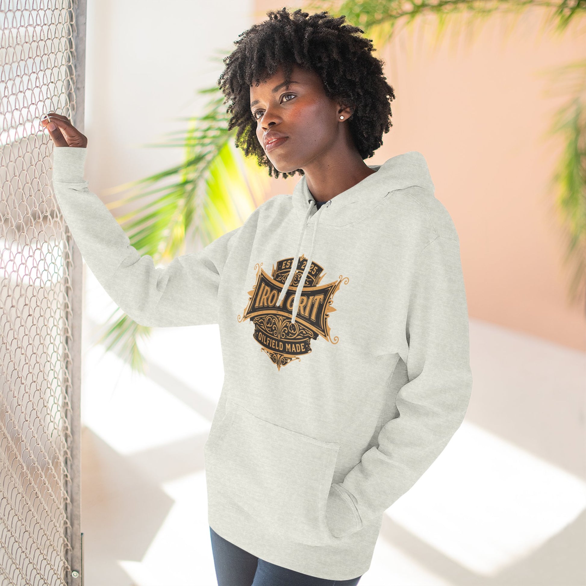Oilfield Rig Sunset Iron Grit Pride Hoodie - Three-Panel Fleece