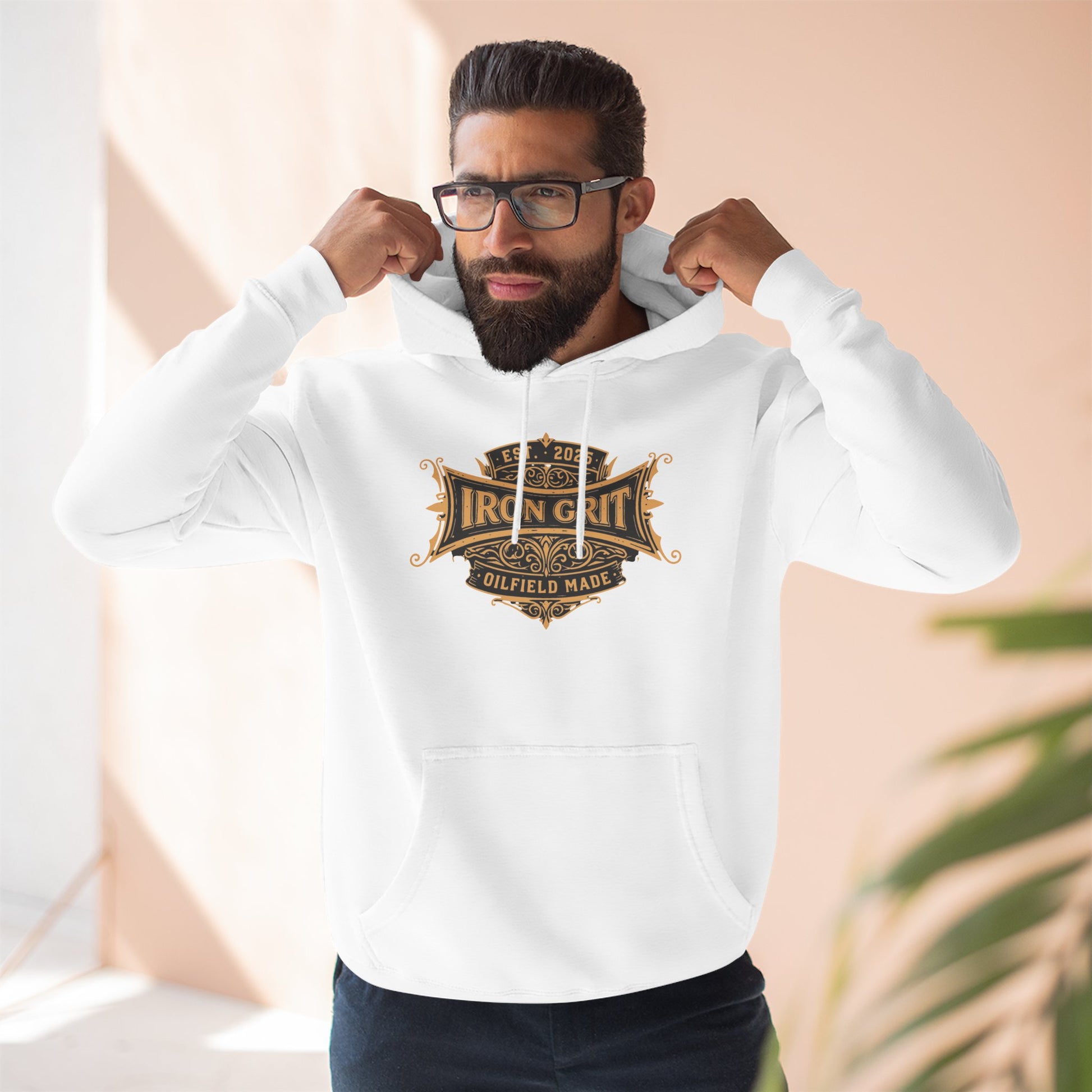 Oilfield Rig Sunset Iron Grit Pride Hoodie | Three-Panel Fleece